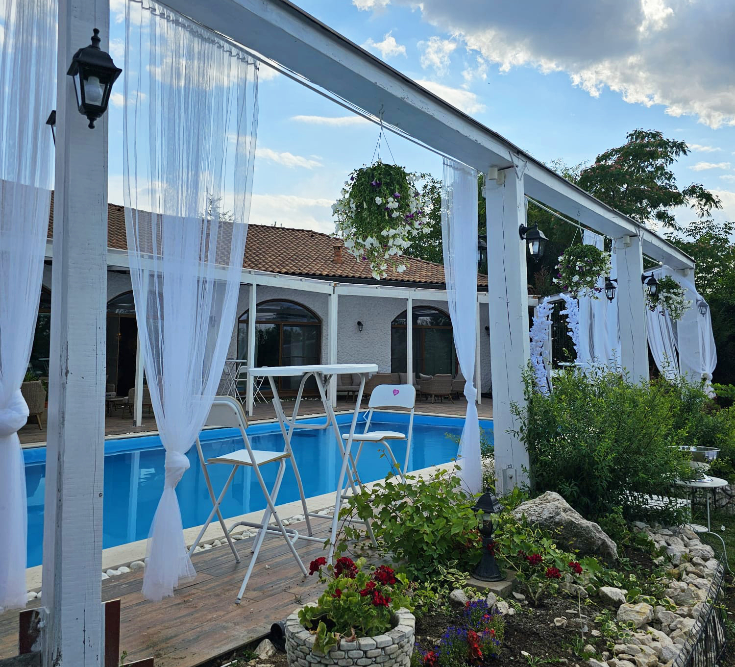 Descoperiți Casa Serafim printr-o colecție de fotografii care surprind farmecul acestui loc de poveste. Grădina generoasa, plină de verdeață, creează un cadru perfect pentru relaxare, oferind o oază de liniște în mijlocul naturii. Fiecare detaliu al grădinii și piscinei reflectă armonia cu natura și promite clipe memorabile într-un decor de poveste.